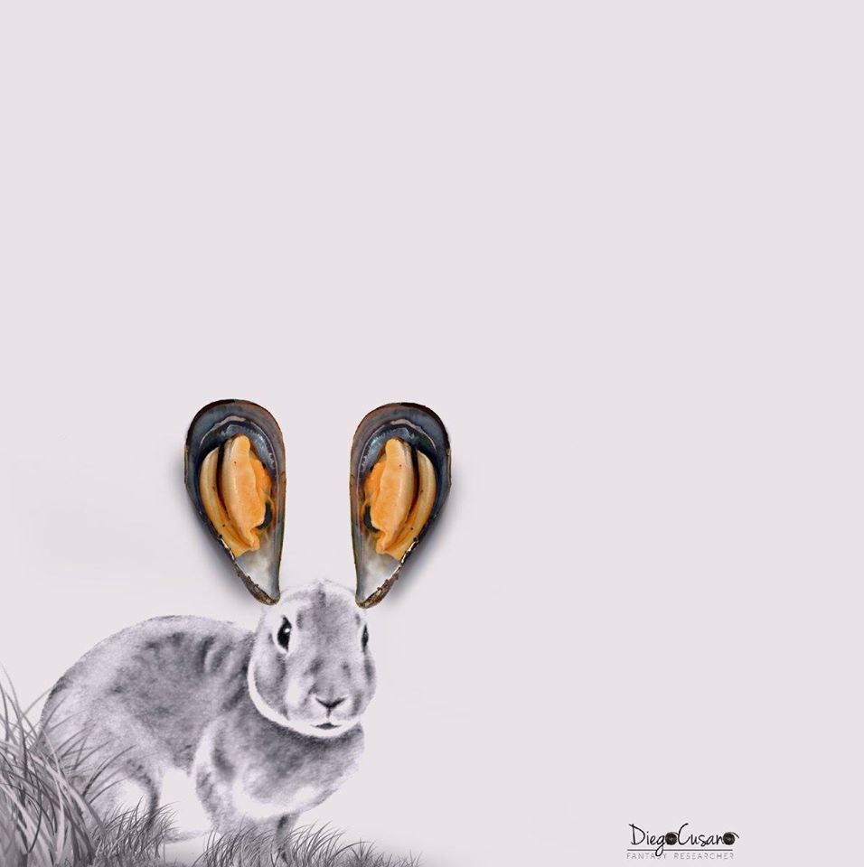 Debe de ser toda una experiencia salir a cenar con Diego, ¿quién sabe lo que él es capaz de ver, por ejemplo, en nuestro plato de albóndigas? ¿las bolas de una mesa de billar, tal vez? Con su mirada y su fantasía debe ser harto complicado ver las cosas tal como son. «Creo que vivo en una realidad diferente, porque lo que dibujo es lo que precisamente imagino cuando veo los objetos…¡ Y a veces resulta muy divertido! Nadie entiendo por qué empiezo a sonreír…», apunta con cierto misterio. Hay que señalar que Cusano, además de comida, de tanto en tanto recurre a flores, animales, humanos y otras cosillas para sus collages.
