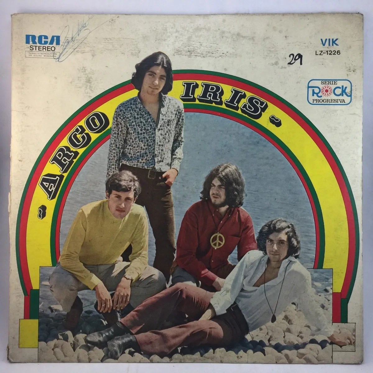 Arco Iris -Santaolalla con camisa roja, Ara Tokatlian, Guillermo Bordarampé y Horacio Gianello- uno de los grupos pioneros del rock argentino.